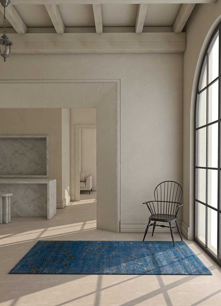 Dark blue patterned luxury rug from Jaipur Rugs in living room